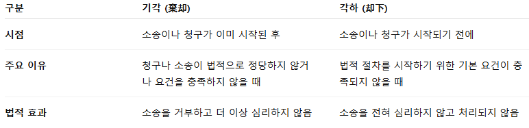 기각과 각하는 비슷한 듯 보이지만, 법적 절차에서의 적용 방식과 시점이 다릅니다. 기각은 소송이 시작된 후 청구가 받아들여지지 않는 경우이고, 각하는 소송이 시작되기 전에 법적 요건이 충족되지 않으면 아예 절차가 진행되지 않는 경우입니다. 이 두 용어의 차이를 명확히 이해하는 것은 법적 절차를 제대로 이해하고 대처하는 데 중요한 역할을 합니다.