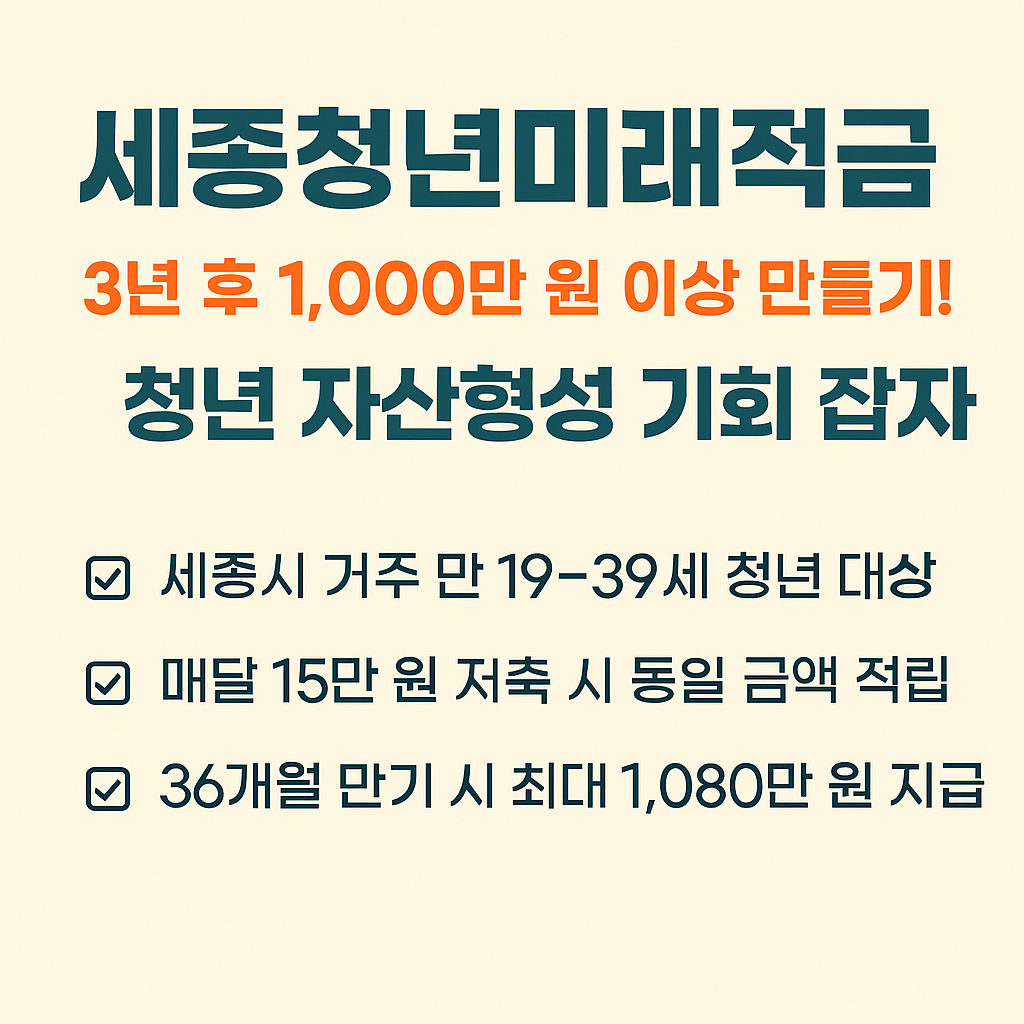 요즘 같은 고물가 시대, 미래를 준비하며 자산을 모으는 일이 쉽지 않죠. 특히 사회초년생이나 청년층은 생활비만으로도 빠듯한 경우가 많습니다. 이런 상황에서 세종시에 거주 중인 청년이라면 놓치지 말아야 할 제도가 바로 세종청년미래적금입니다. 세종청년미래적금은 세종특별자치시가 직접 지원하는 청년 자산형성 지원 사업으로, 본인이 저축한 금액만큼 세종시가 동일하게 지원금을 적립해주는 아주 매력적인 정책입니다.