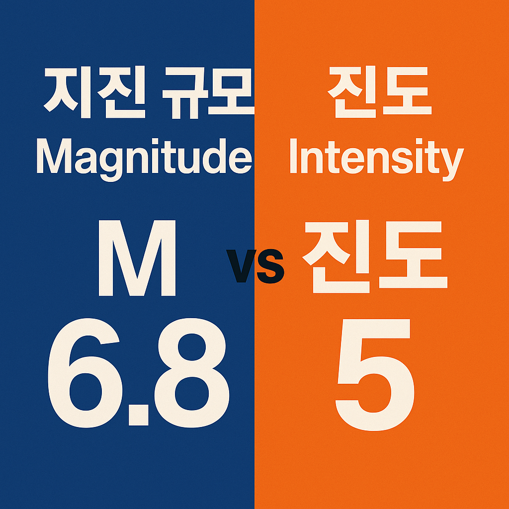 비슷해 보이지만 ‘지진 규모(Magnitude)’와 ‘진도(Intensity)’는 완전히 다른 개념입니다.